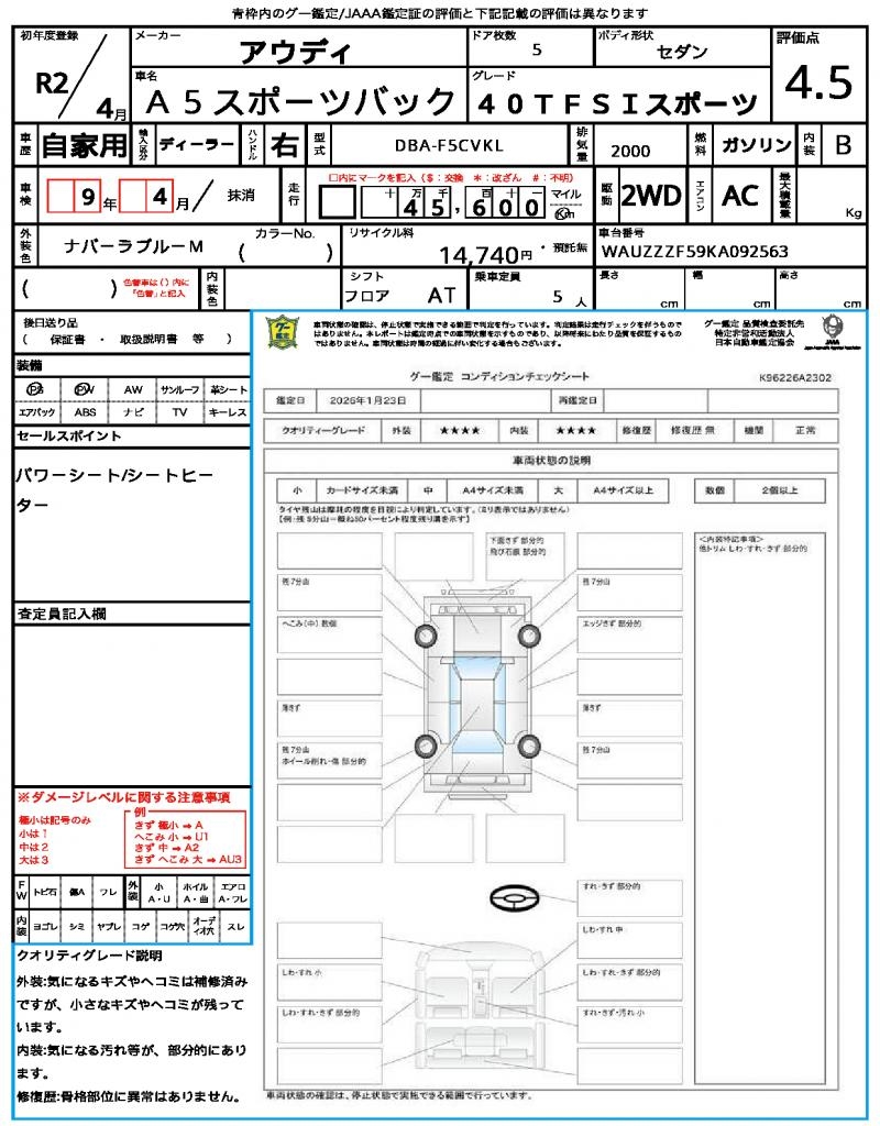 | VIN/Serial No. | WAUZZZF59KA092563 |