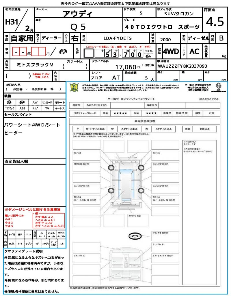 VIN/Serial No. WAUZZZFY8K2037090
