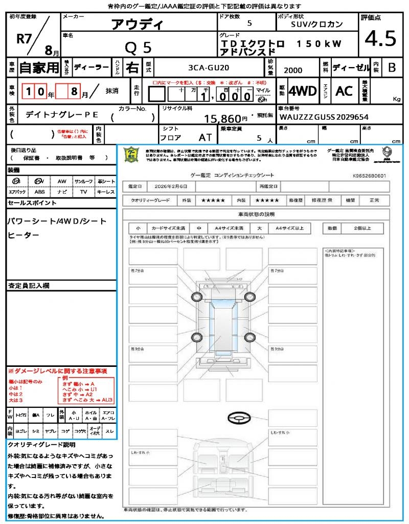 VIN/Serial No. WAUZZZGU5S2029654