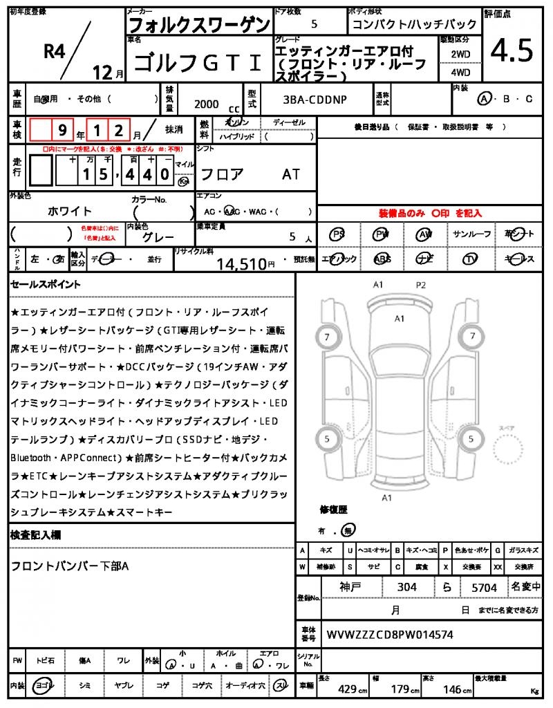 | VIN/Serial No. | WVWZZZCD8PW014574 |