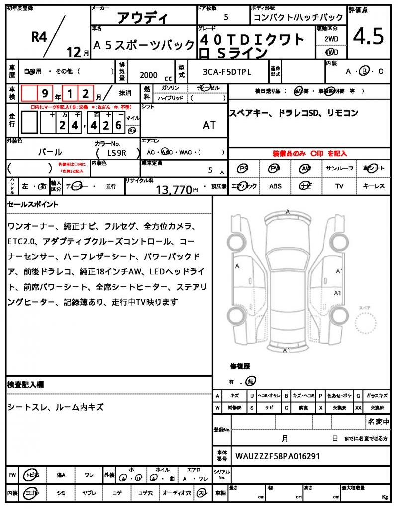 | VIN/Serial No. | WAUZZZF58PA016291 |
