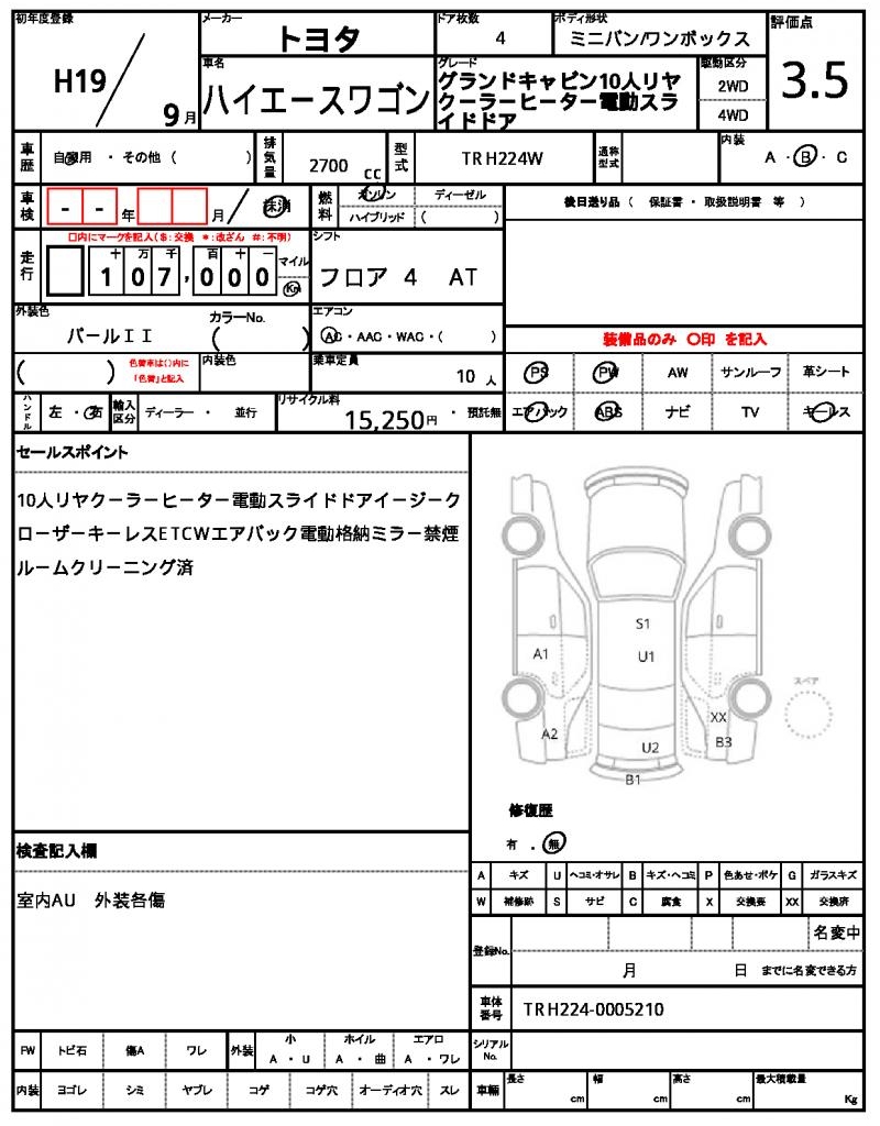 | VIN/Serial No. | TRH224-0005210 |