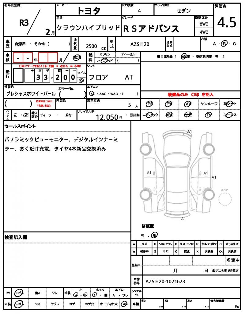 | VIN/Serial No. | AZSH20-1071673 |