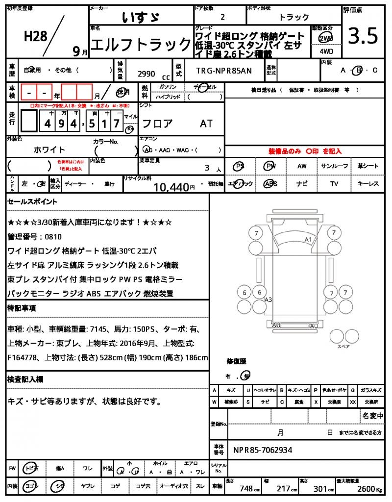 | VIN/Serial No. | NPR85-7062934 |