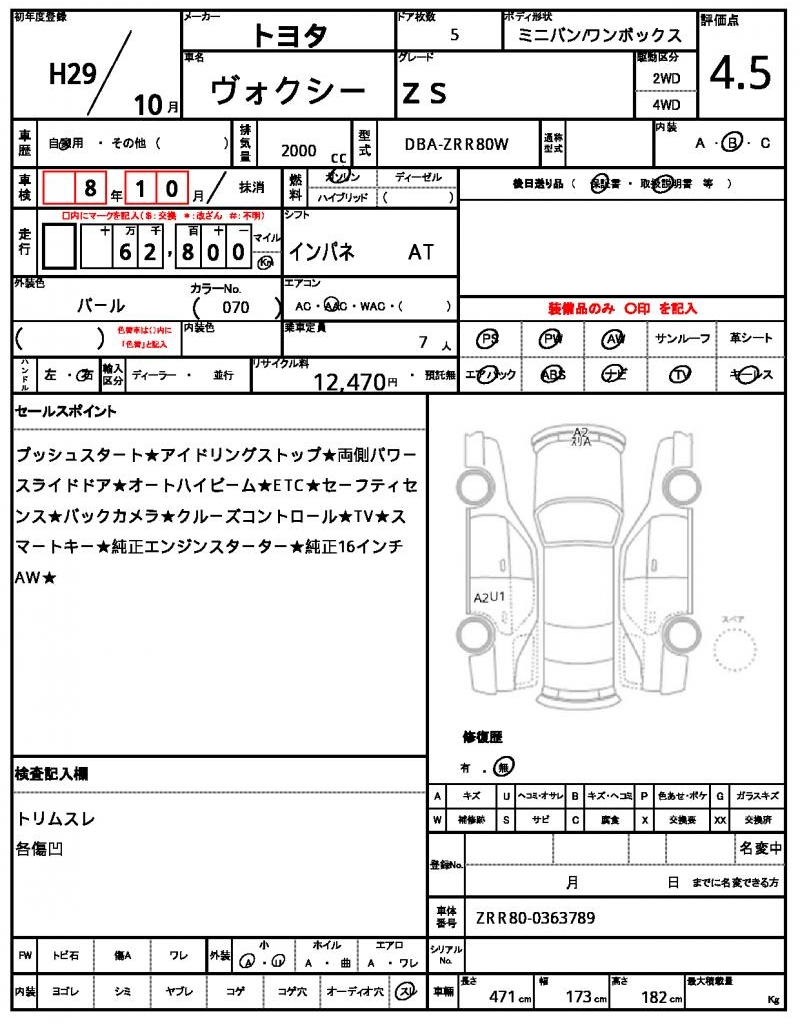 | VIN/Serial No. | ZRR80-0363789 |