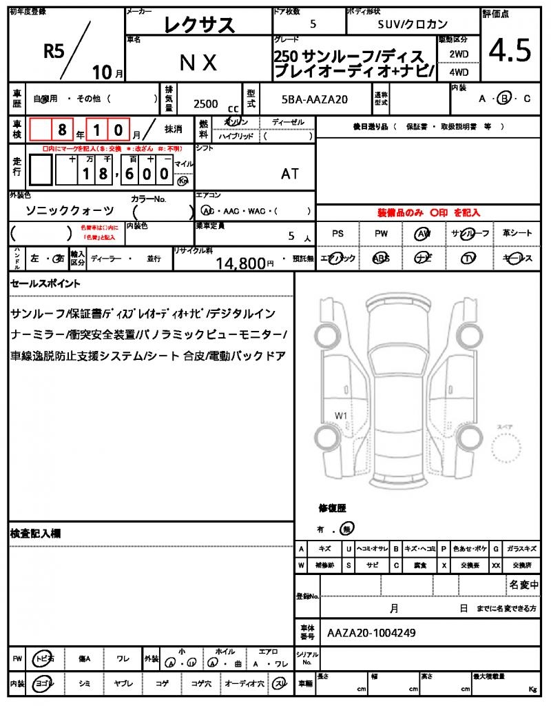 | VIN/Serial No. | AAZA20-1004249 |