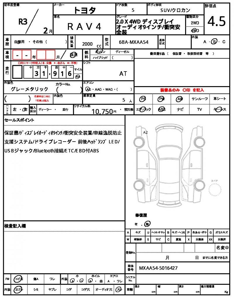 | VIN/Serial No. | MXAA54-5016427 |