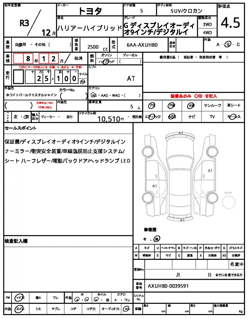 | VIN/Serial No. | AXUH80-0039591 |
