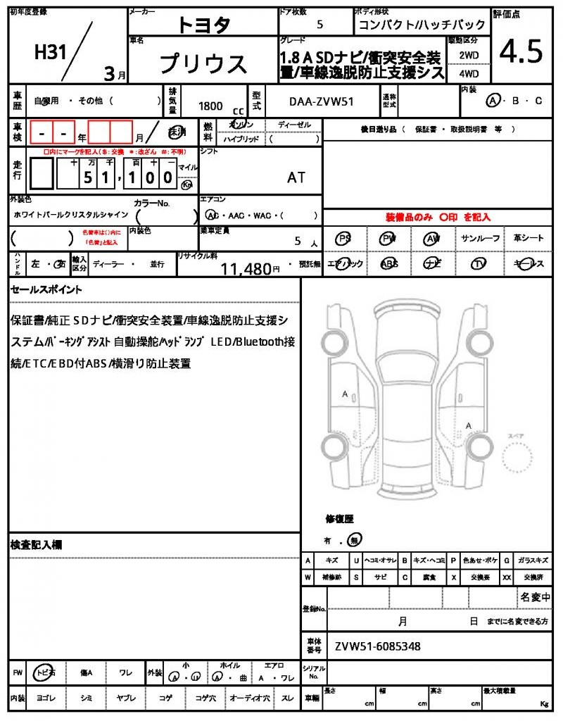 | Model code | DAA-ZVW51 |