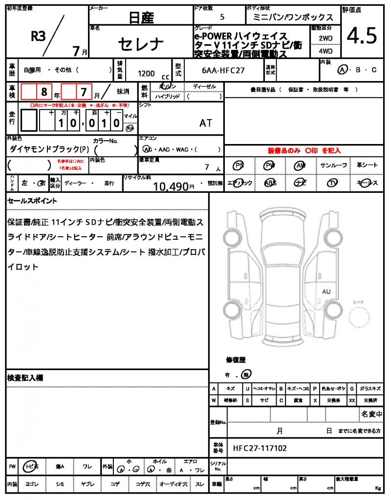 | VIN/Serial No. | HFC27-117102 |