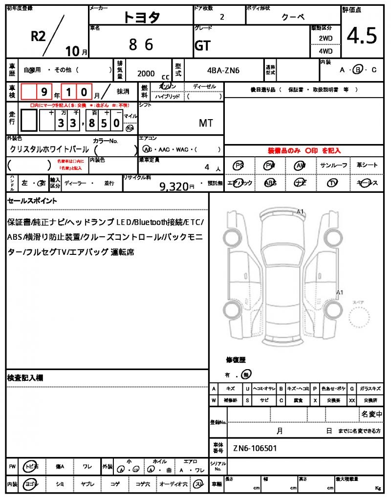 | Model code | 4BA-ZN6 |