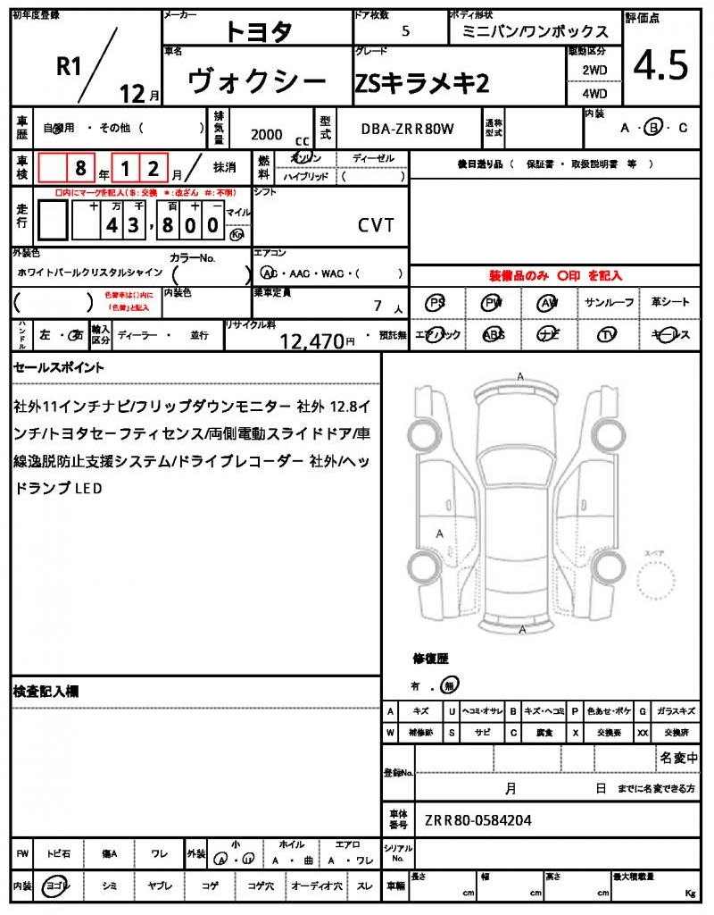 | VIN/Serial No. | ZRR80-0584204 |