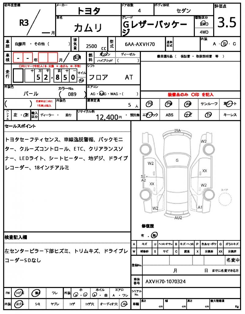 | VIN/Serial No. | AXVH70-1070324 |