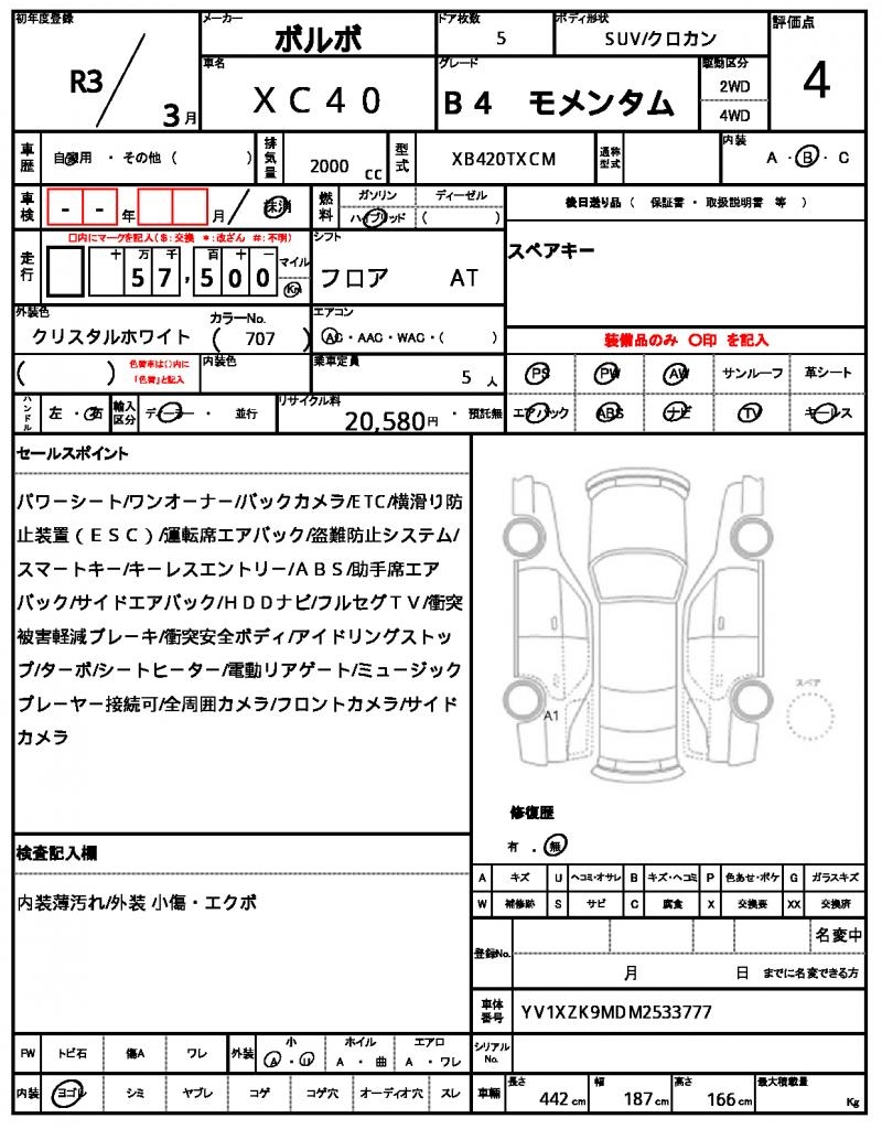 | VIN/Serial No. | YV1XZK9MDM2533777 |