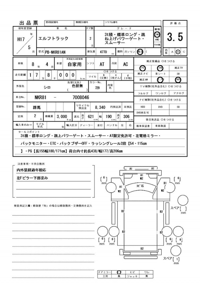 | VIN/Serial No. | NKR81-7008046 |
