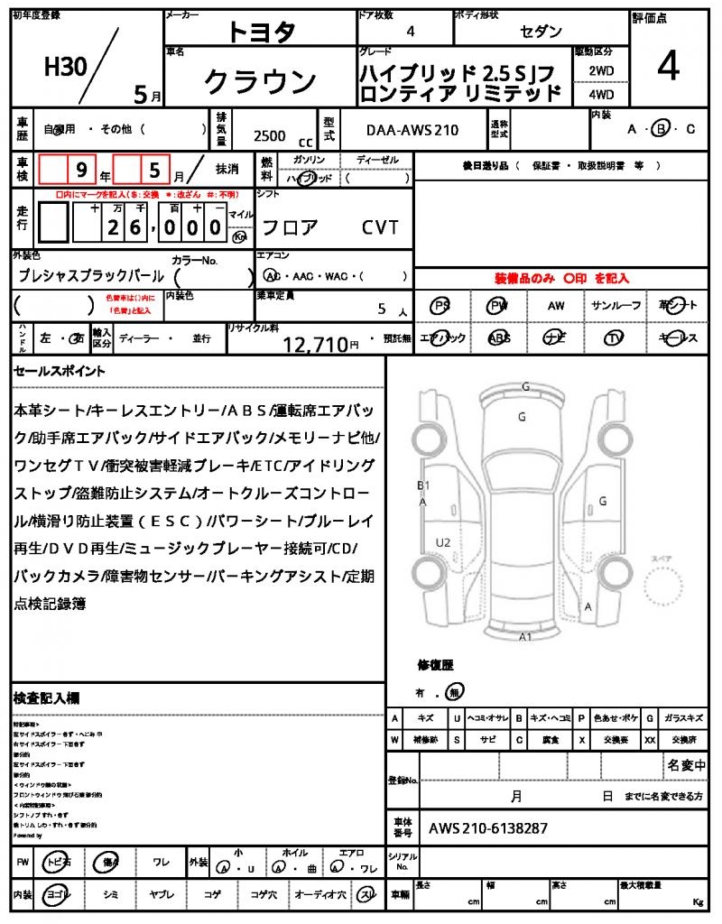 | VIN/Serial No. | AWS210-6138287 |