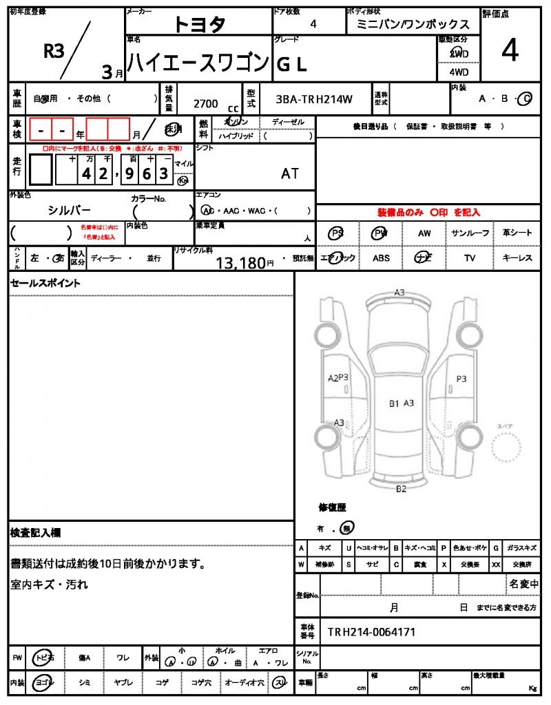 | VIN/Serial No. | TRH214-0064171 |