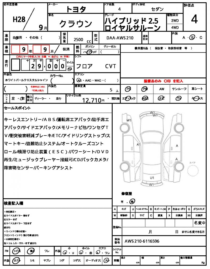 | VIN/Serial No. | AWS210-6116596 |