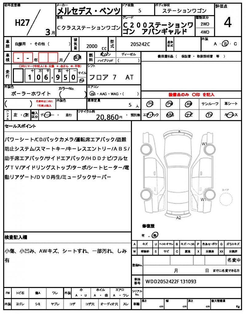 2015 MERCEDES BENZ C-CLASS STATIONWAGON