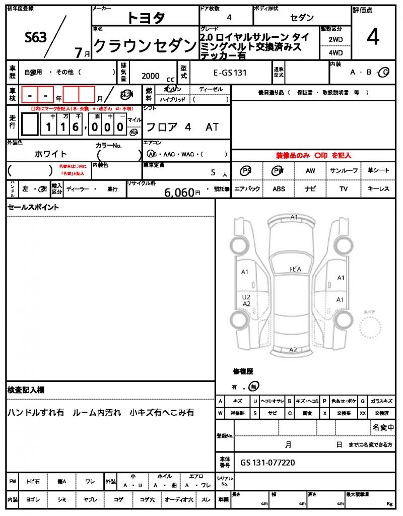 | VIN/Serial No. | GS131-077220 |