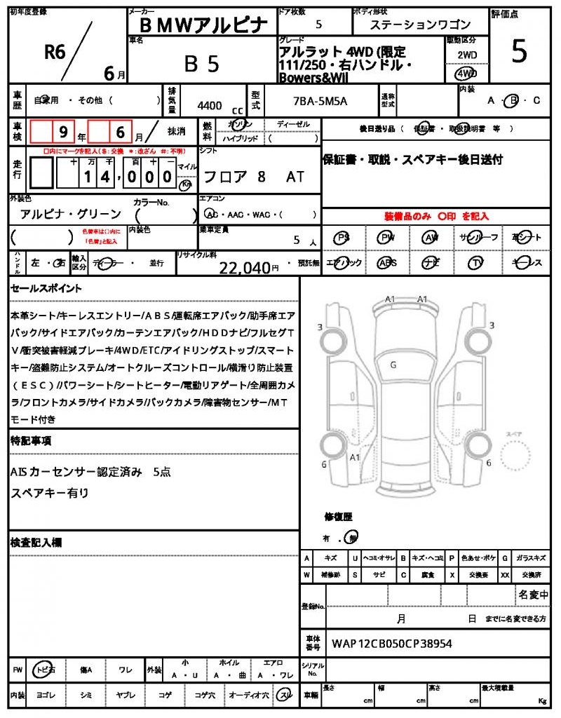 | VIN/Serial No. | WAP12CB050CP38954 |
