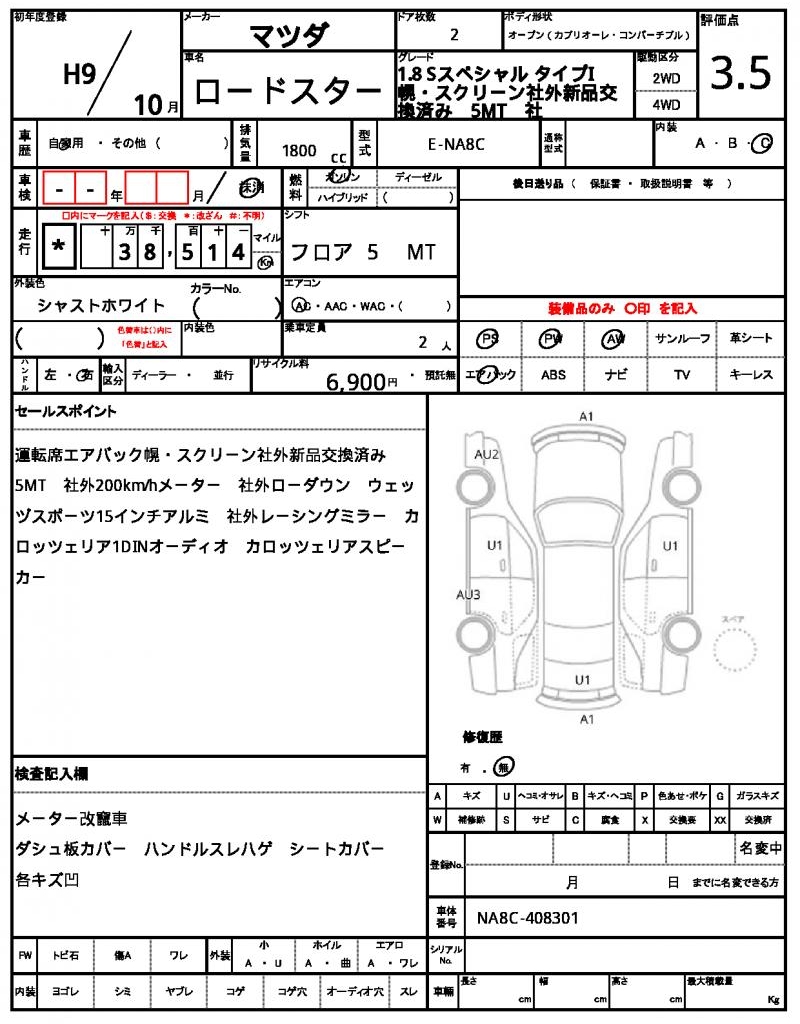 | VIN/Serial No. | NA8C-408301 |