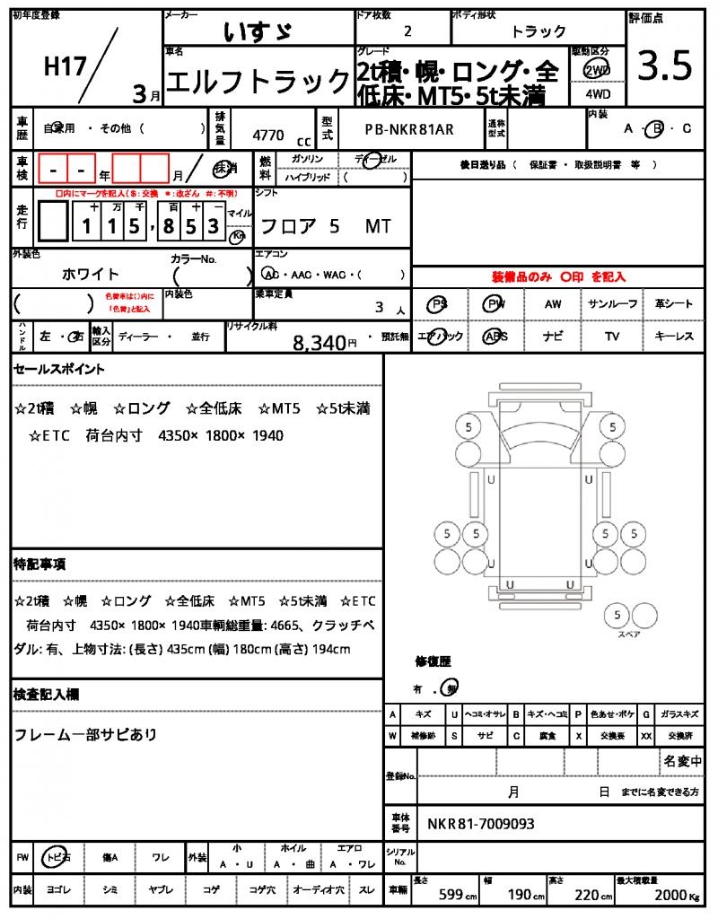 | VIN/Serial No. | NKR81-7009093 |