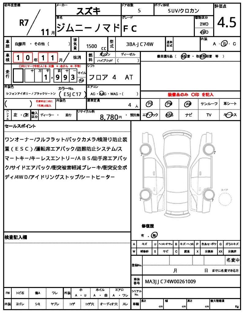 VIN/Serial No. MA3JJC74W00261009