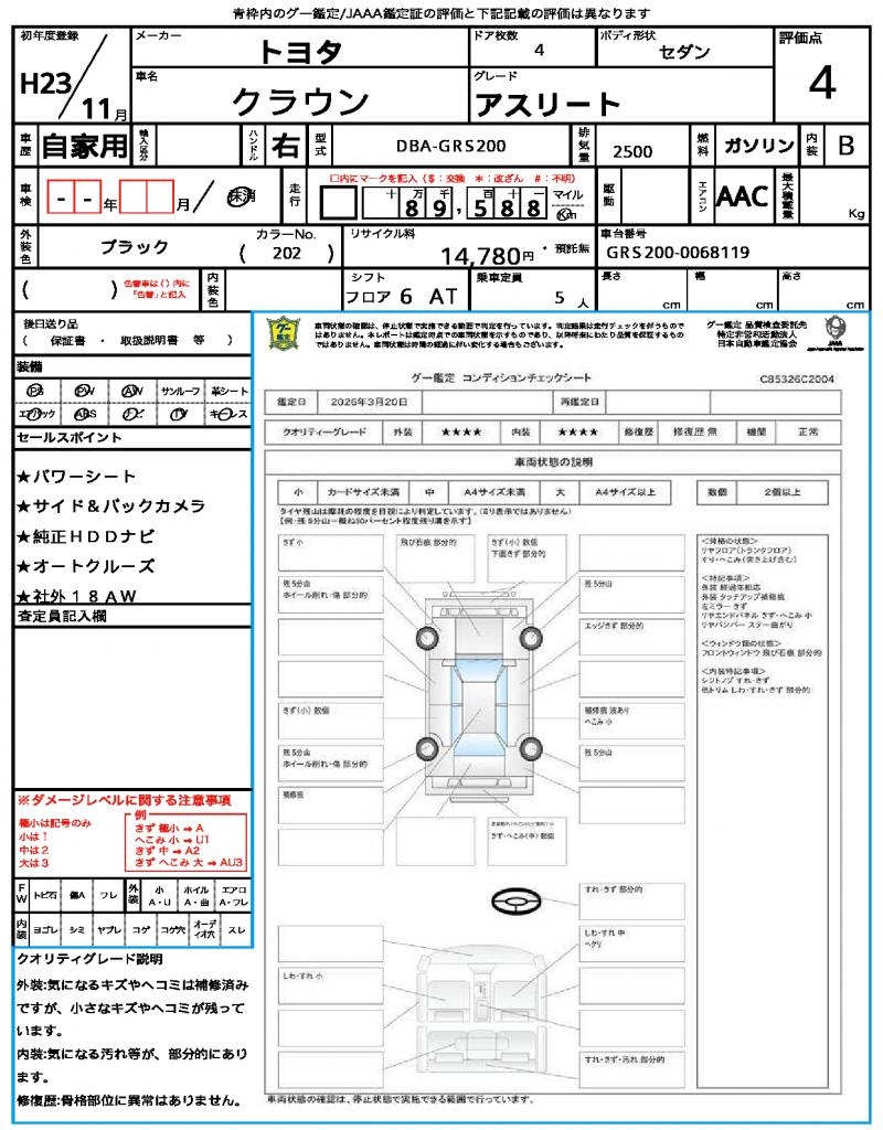 | VIN/Serial No. | GRS200-0068119 |