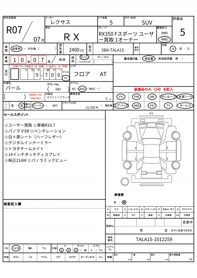 | VIN/Serial No. | TALA15-1012259 |