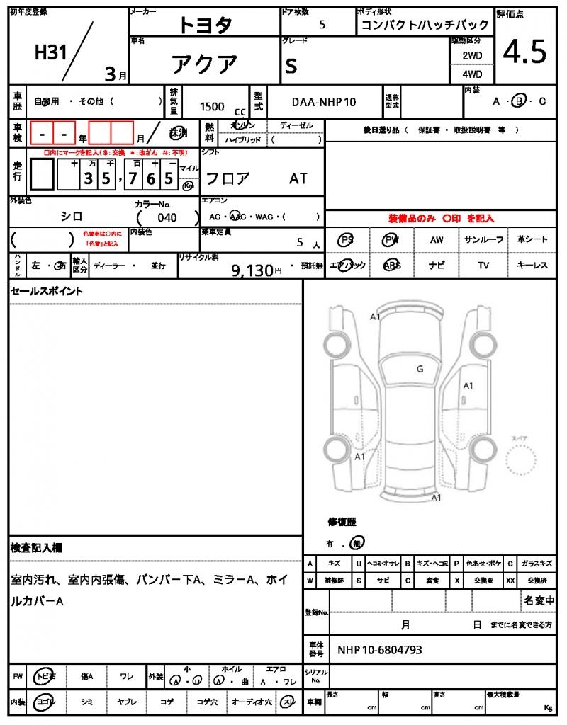 2019 TOYOTA AQUA