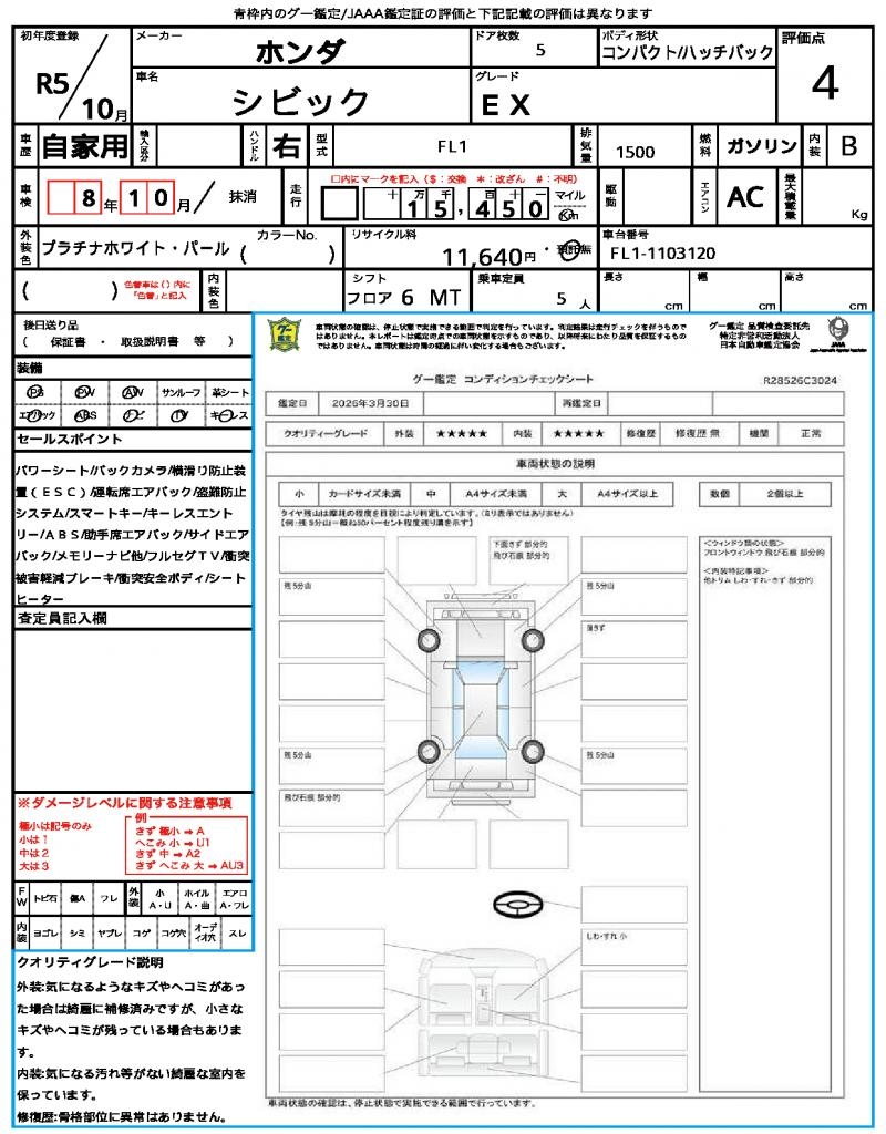 | Odometer | 15450km |