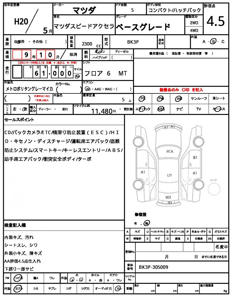 | VIN/Serial No. | BK3P-305009 |