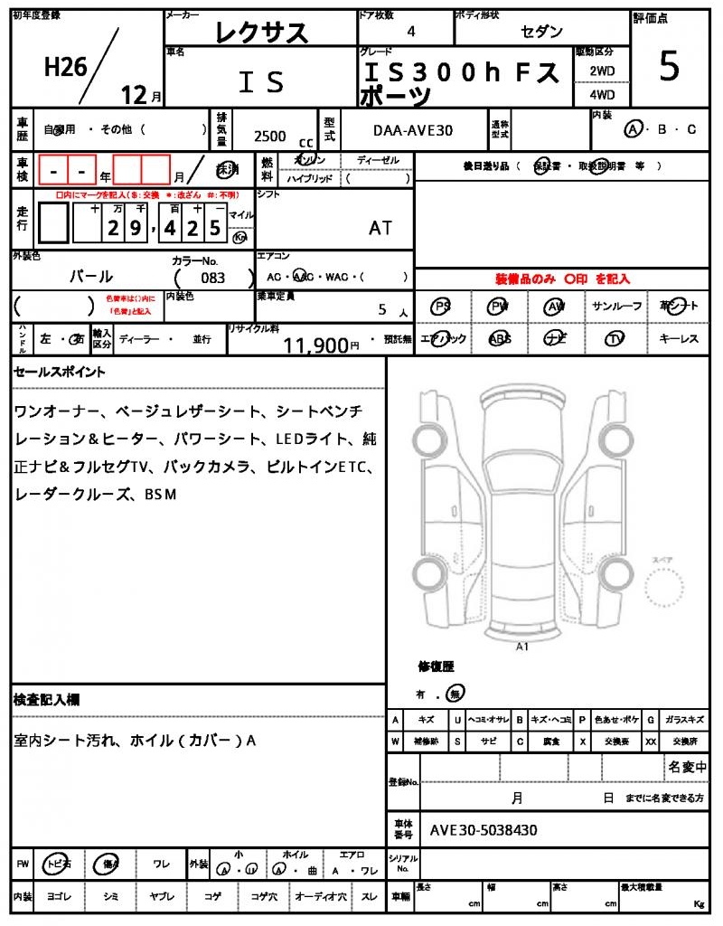 | VIN/Serial No. | AVE30-5038430 |