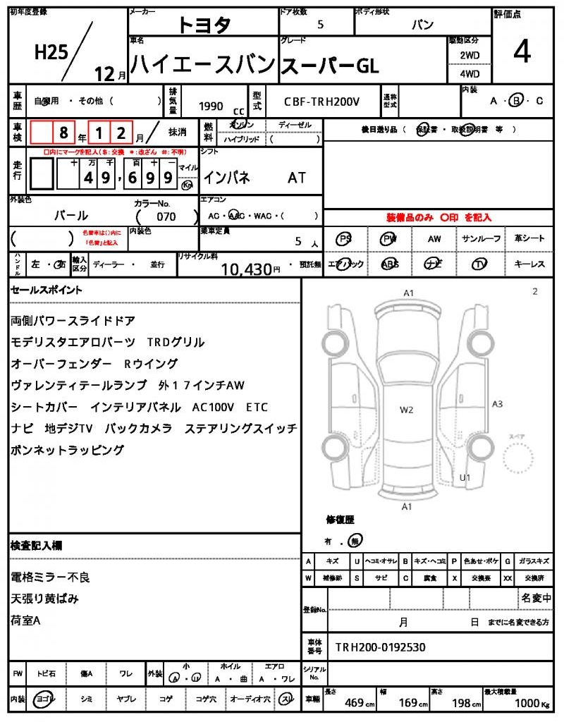| VIN/Serial No. | TRH200-0192530 |