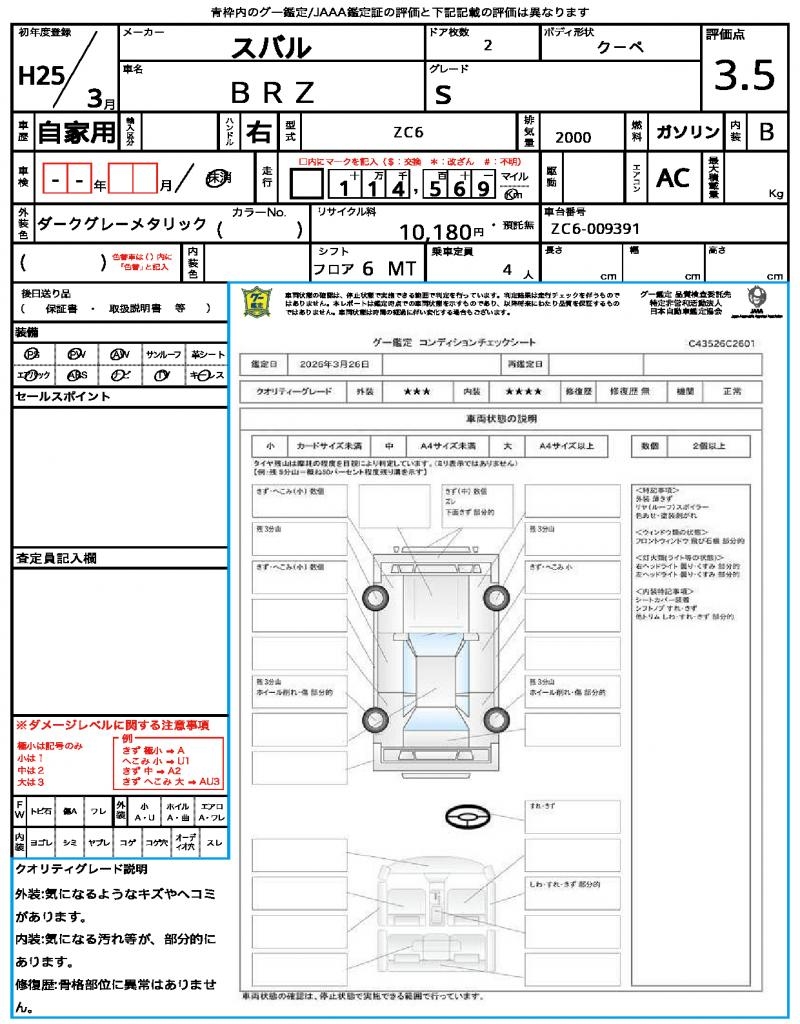 | VIN/Serial No. | ZC6-009391 |