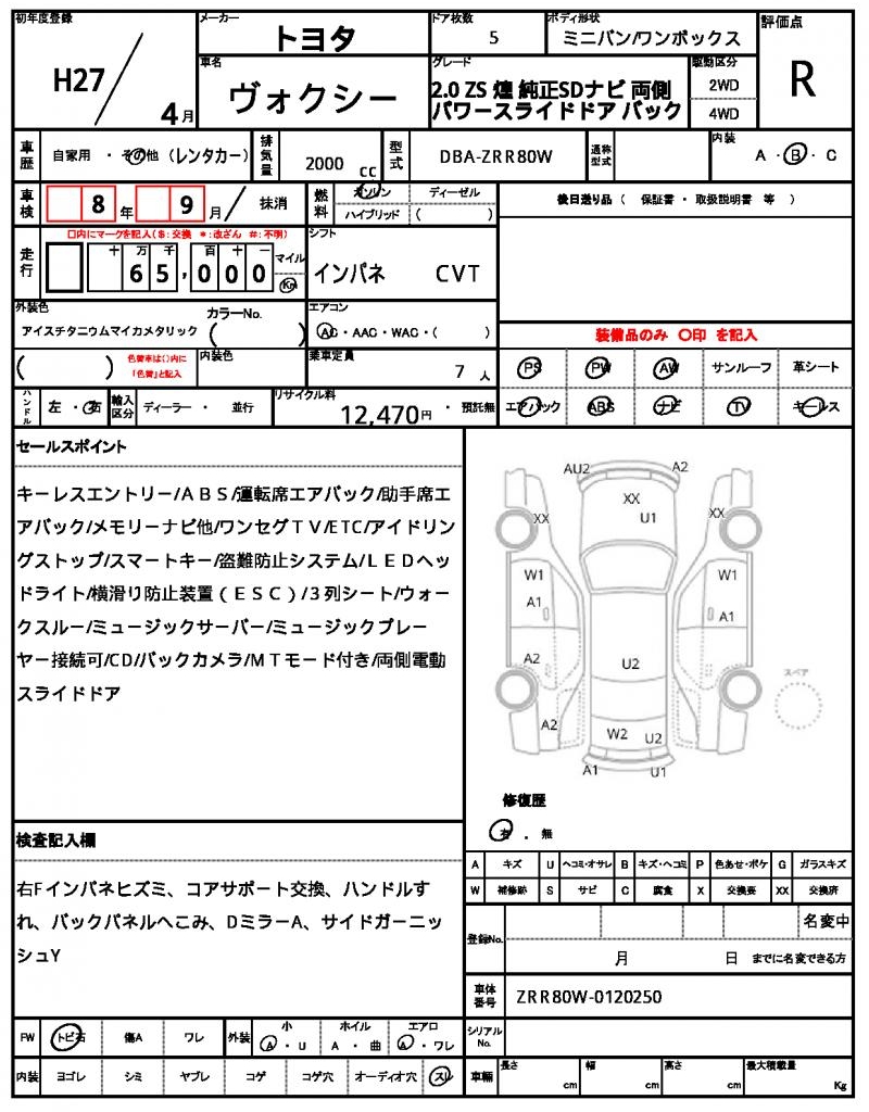 | VIN/Serial No. | ZRR80W-0120250 |