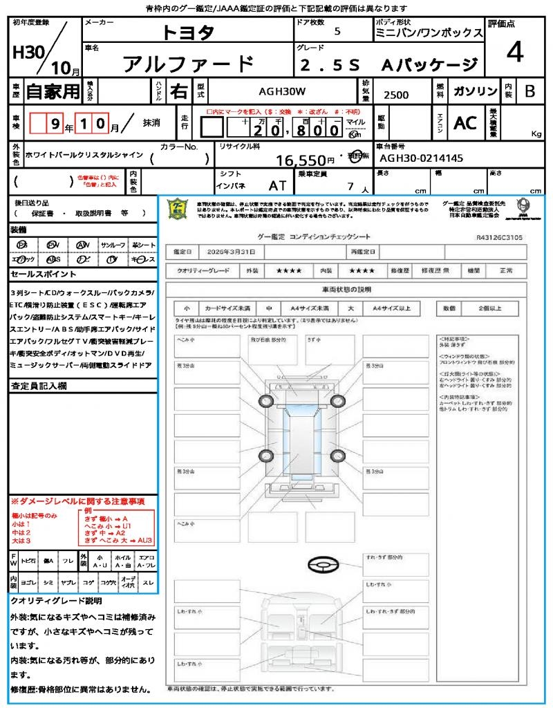 | VIN/Serial No. | AGH30-0214145 |