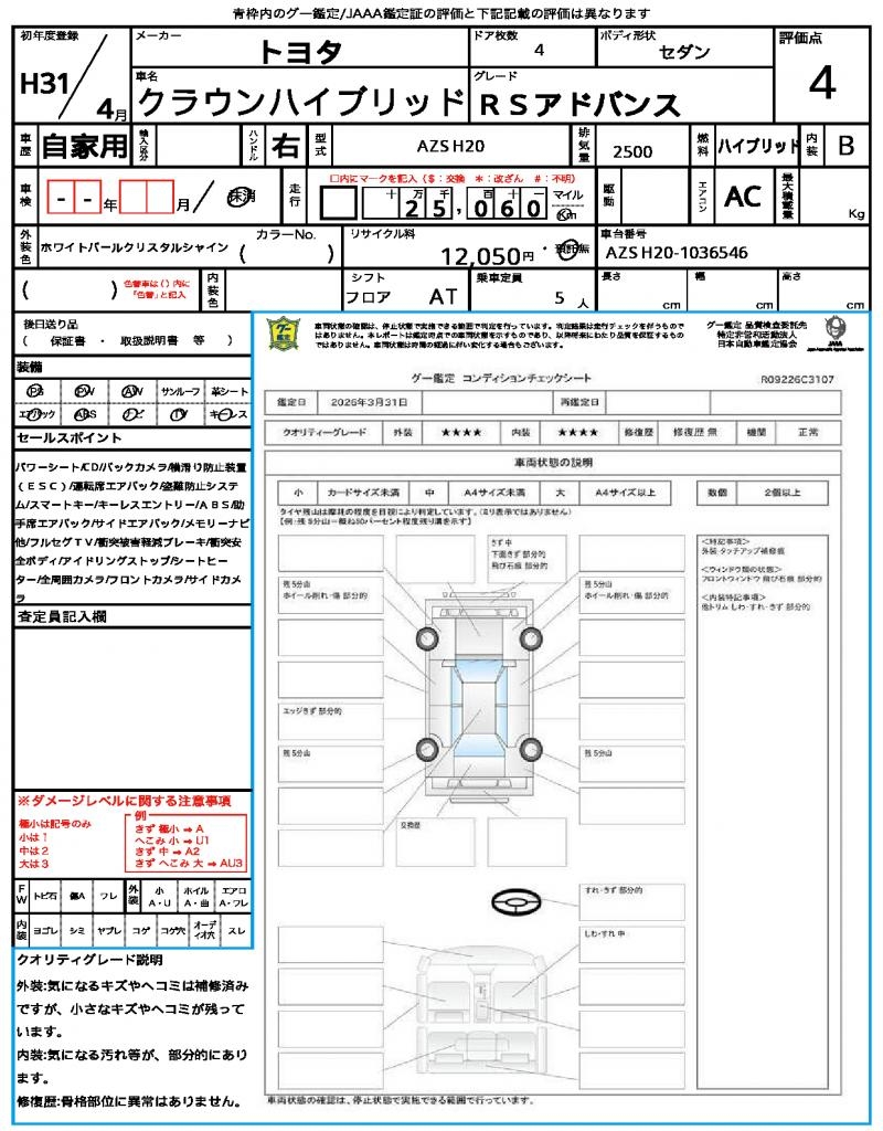 | VIN/Serial No. | AZSH20-1036546 |