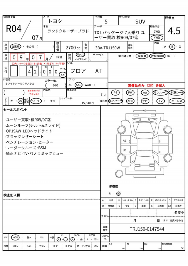 | VIN/Serial No. | TRJ150-0147544 |