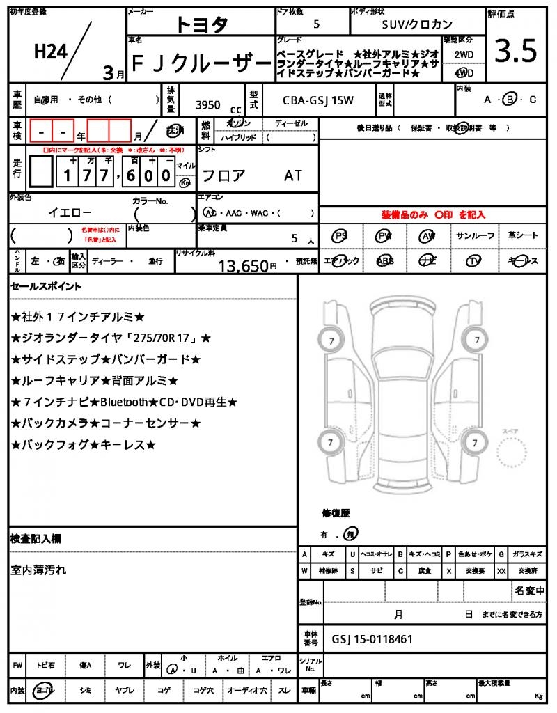| VIN/Serial No. | GSJ15-0118461 |