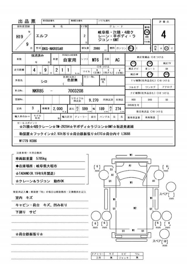 | VIN/Serial No. | NKR85--7003208 |