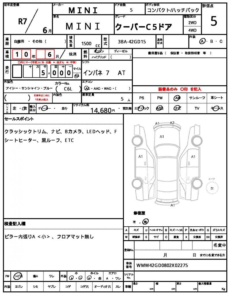 | VIN/Serial No. | WMW42GD0802X02275 |