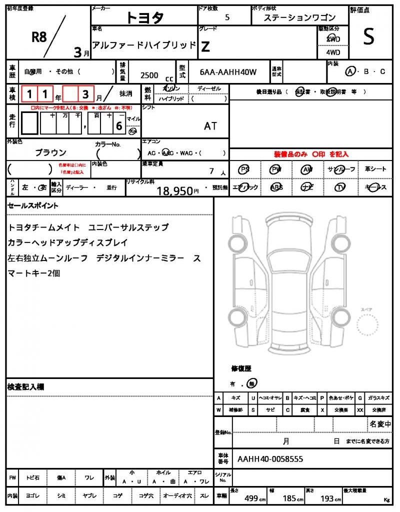 VIN/Serial No. AAHH40-0058555