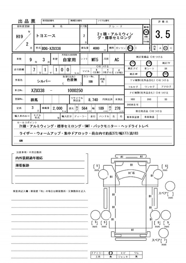 | VIN/Serial No. | XZU338-1000250 |