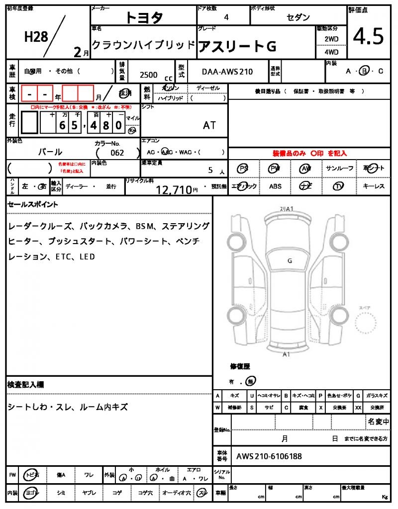 | VIN/Serial No. | AWS210-6106188 |