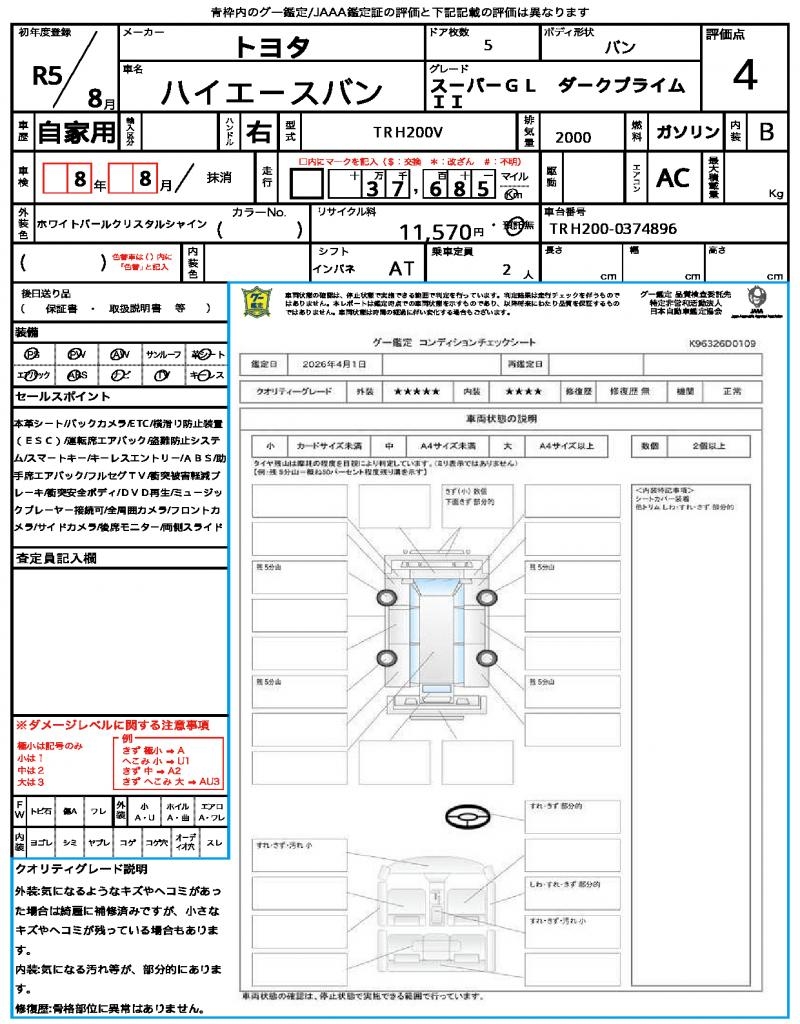| VIN/Serial No. | TRH200-0374896 |