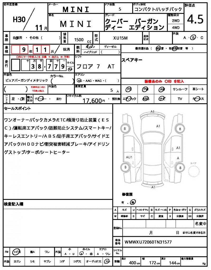 | VIN/Serial No. | WMWXU72060TN31577 |
