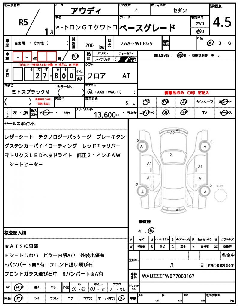 | VIN/Serial No. | WAUZZZFW0P7003167 |