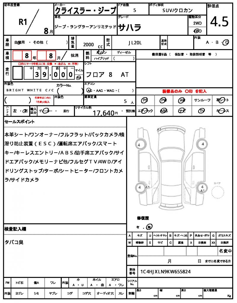 VIN/Serial No. 1C4HJXLN9KW655824